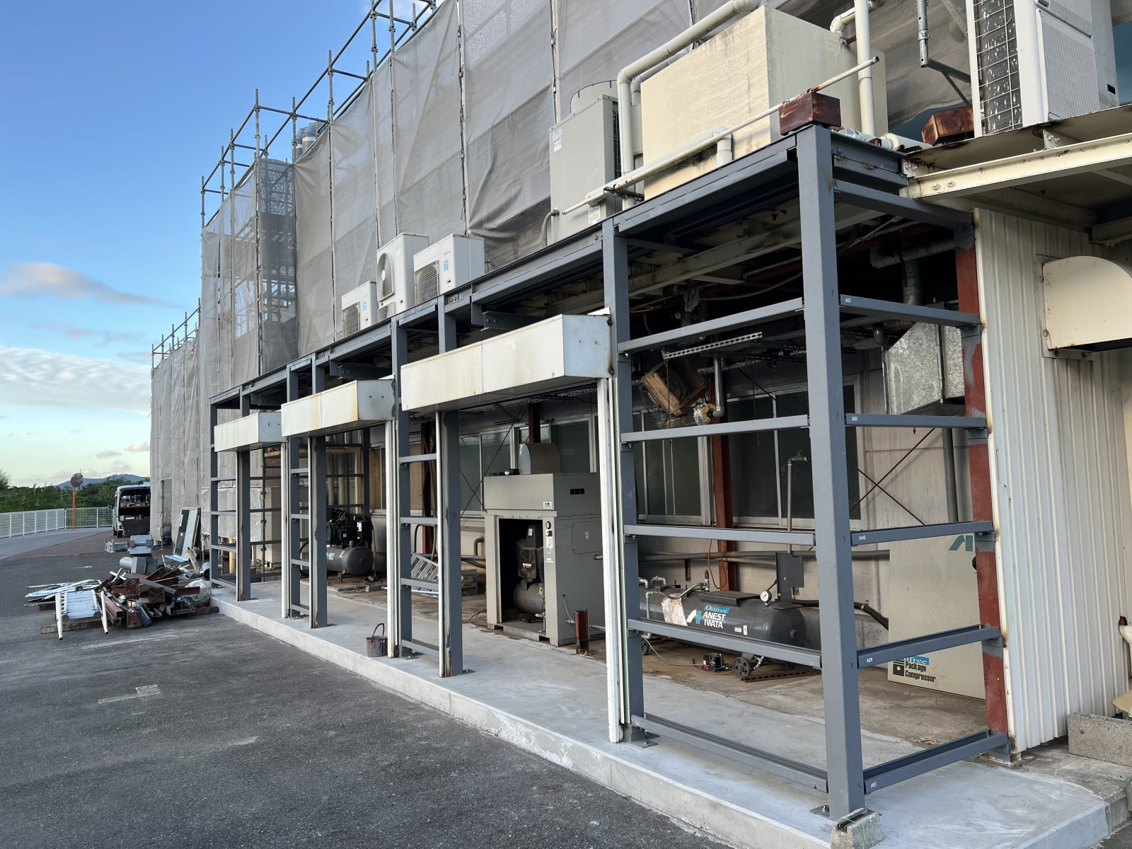 工場施設 2026/03/04 工場施設 滋賀県内にて、いつもお世話になっております、会社様応援で、フロア延長の鍛治工事の方させて頂きました。 こちらの現場から新たな、仲間も加わり、安全且つ確実な、建て方作業、溶接作業の方させて頂きました。 この様な、鍛治工事は、思わぬ所で 思わぬ事もありましたが、確実な報連相をし、現場対応の方させていただけました。